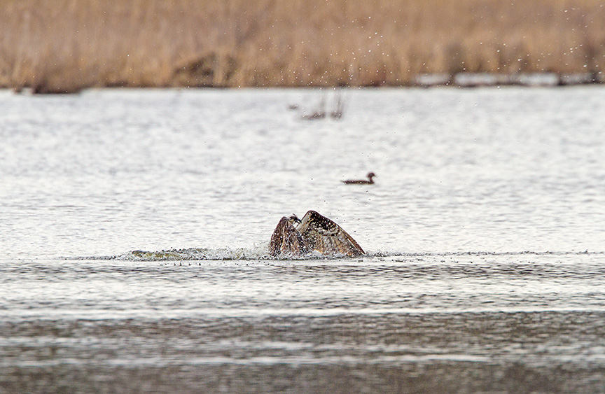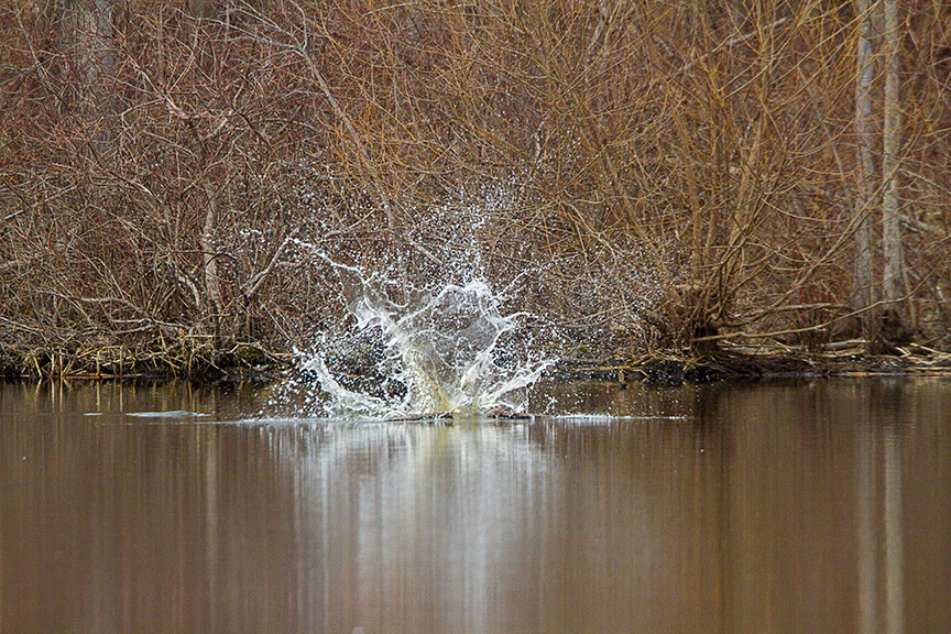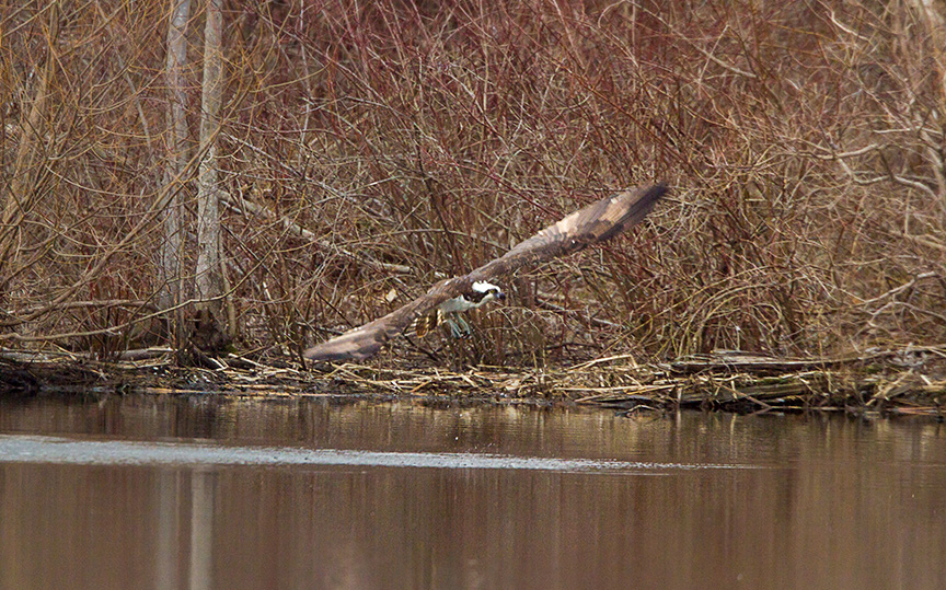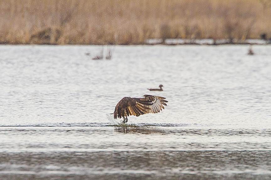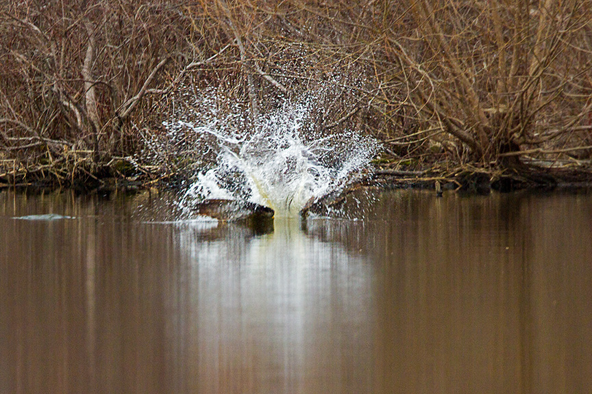 I was at the local Nature Preserve when an Osprey flew in. Seems a little early here for an Osprey, but was happy to see one. It was a very overcast day, but still got a few splashes as the Osprey dove into the Lake, along with some exits out of the Lake. Interesting to see the sequence of flying out of the lake. Also the usual shaking off the water once airborne. The Osprey never got a fish, but tried multiple times. Here are some images from a few of the attempts.