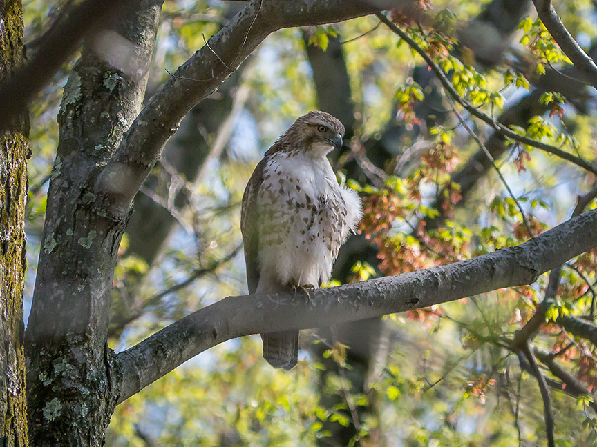 While on a walk at a local environmental center, this hawk flew over our heads and landed in a tree off to one side. I only had a small camera that I carry on walks, but took a few shots.