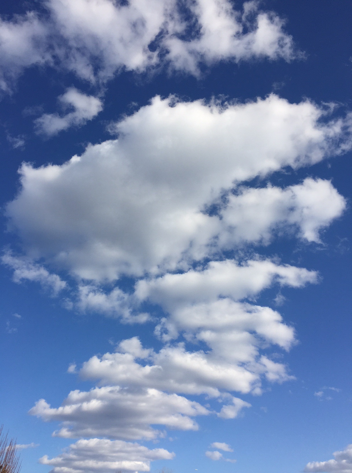 When I was leaving work and walking to my car, I saw these layers of clouds above me. I liked the stacked and staggered look going off in the distance and thought it looked interesting. I did not want to go back in and get a camera so I just used my iPhone. This is a single shot version. I also shot multiples to blend in Photoshop later.