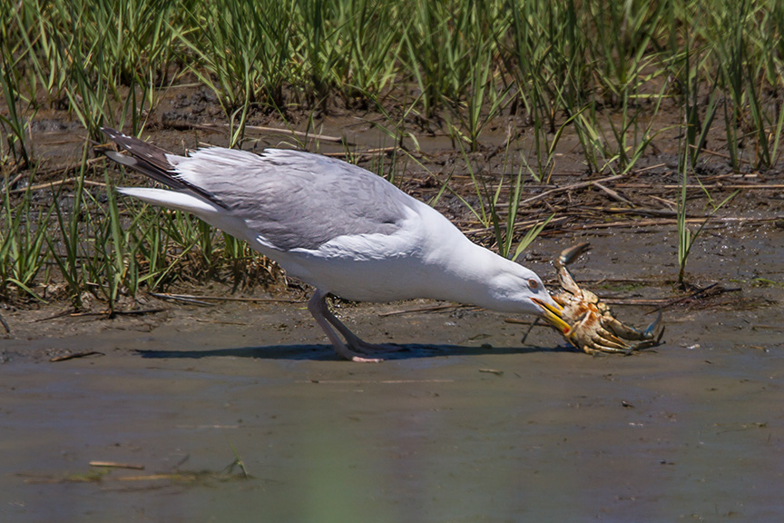 As I was photographing a Black-crowned Night-heron looking for a meal in the water, I noticed this gull working the far shoreline looking for crabs  I got a few images, then went back to photographing the Night-heron.