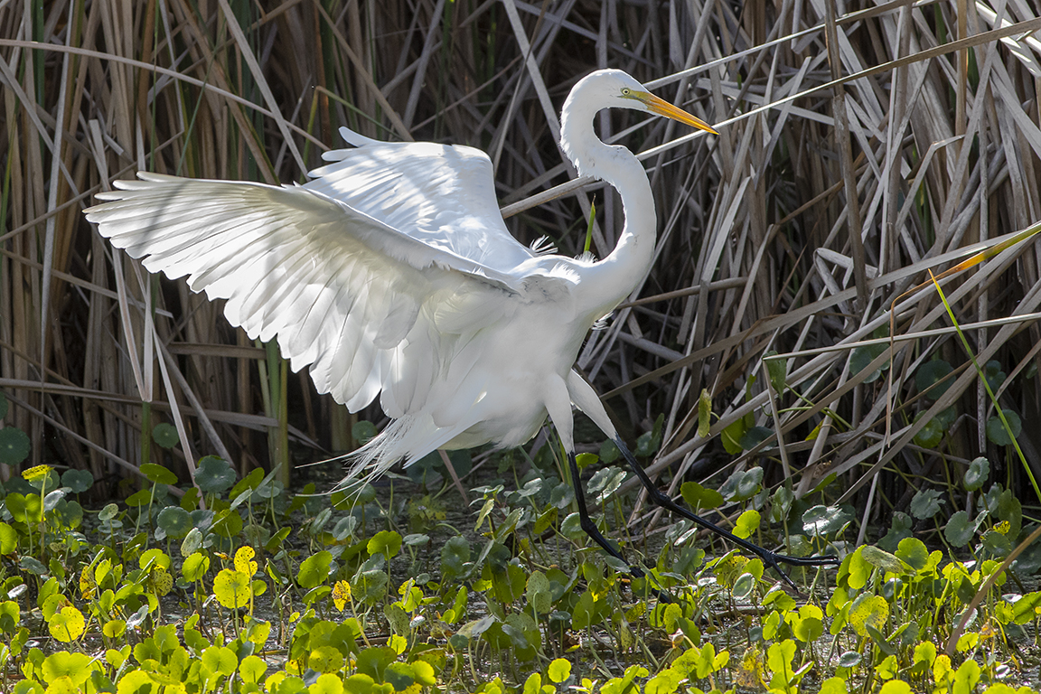 When we were photographing the Otters at Lake Woodruff NWR, this Great Egret flew in by the Otters. I liked the sunlight highlighting the feathers in the wing as it was landing. I was using a Canon R with a 300mm lens. The Canon R holds the highlight details much better than my other Canon cameras and has better shadow detail also.