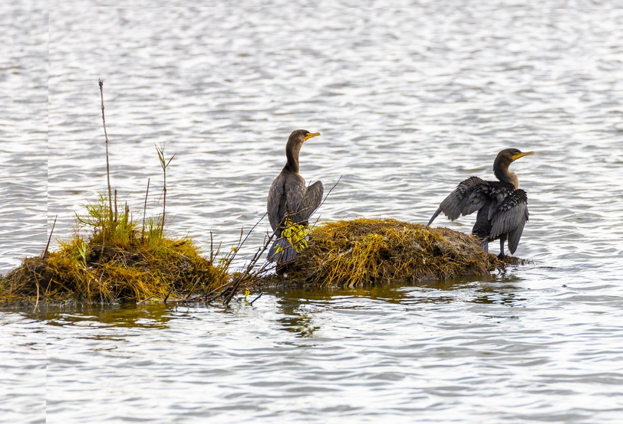 Double Crested Cormorants, 2 image Panorama, @ 600mm, f/8, Canon R, then cropped in for tighter view