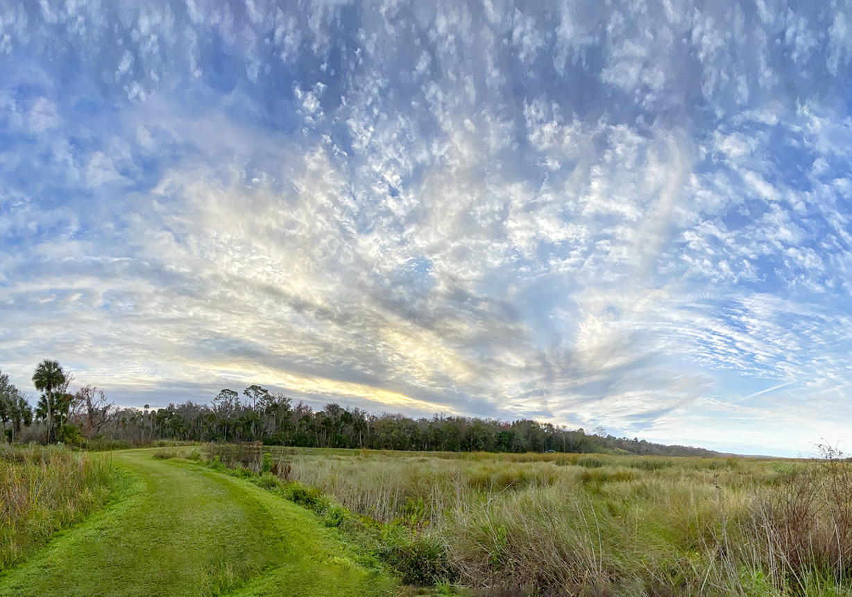 Many times when we are out walking in Wildlife Refuges I carry a main camera with a 400mm lens or a 150-600mm zoom lens and a m43 camera with wide angle 14-140mm lens. I also have in my photo vest a few Teleconverters just in case I see something interesting farther out for the full frame camera. But as I am getting older I … Continue reading Lake Woodruff NWR Multi-Image iPhone Panoramas