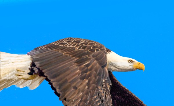 We were taking a walk at the Blackwater NWR when this Bald Eagle flew close by us. It was fun to see this Eagle close-up as it went by. I was using a Canon 1D mkIII camera with a 400mm DO lens with a 1.4x teleconverter. The Canon 1D mkIII had a cropped 1.3x sensor so with the cropped sensor & the 1.4x teleconverter I had a 728mm image.