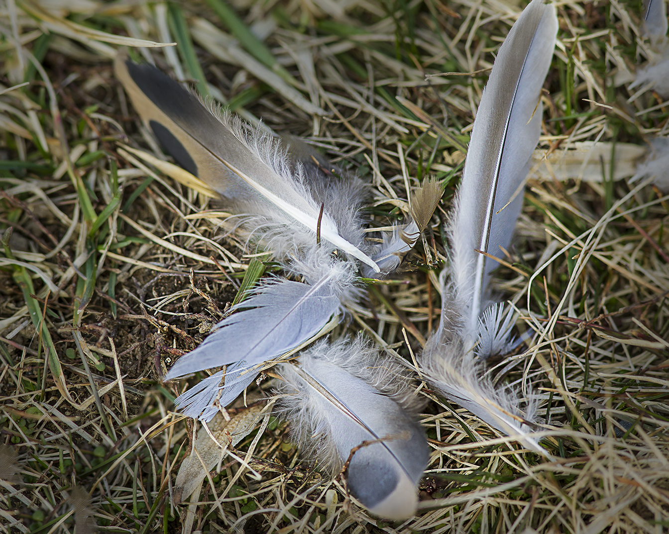 Some more feathers I found at the Davidson Mill Pond Park in New Jersey. While taking a walk, we found a few bunches of feathers. I liked the colors, textures and position of the main group of feathers. The featured image was 5 shots, handheld, overlapped and assembled in Photoshop. Taken with a 300mm f/4 lens. Photoshop usually does a pretty good job assembling handheld image series, with maybe a few manual touch ups.