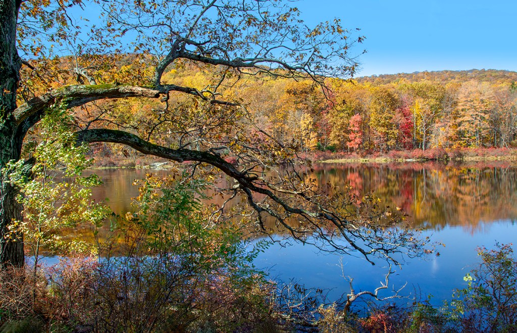 A series of multi-image panoramas taken at the 7 Lakes Parkway that runs through Harriman State Park to Bear Mountain in New York state. It is an excellent area for photographing Colorful Fall Landscapes with colorful leaves and colorful reflections in the Lakes. All images here were taken handheld with a Canon 1D mkIV with a Canon 24-105mm lens. The Featured Image is made from 3 landscape images taken @ 24mm.