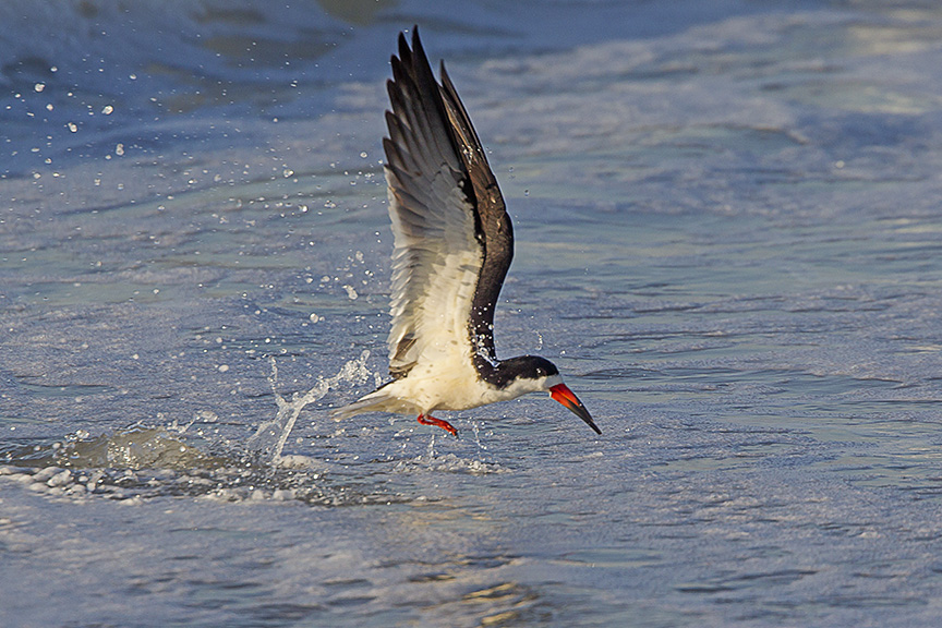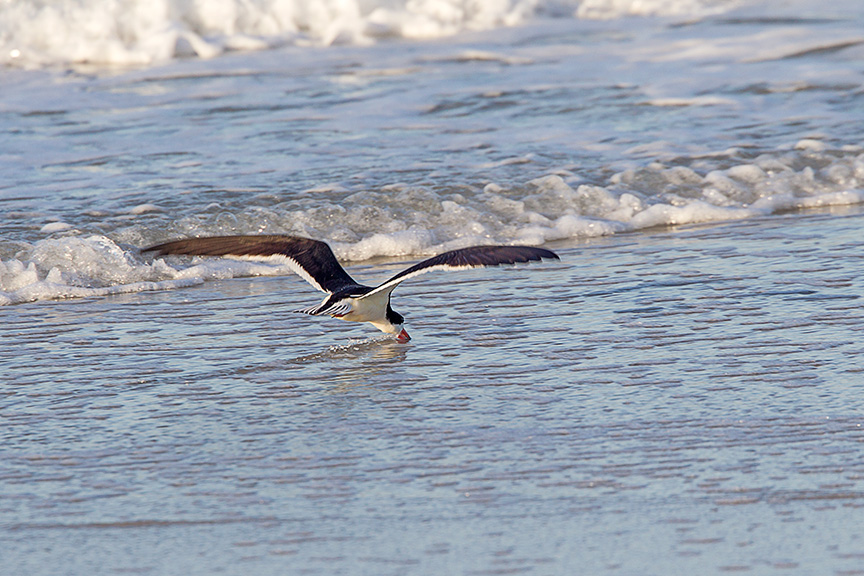 Black Skimmer “Skimming” in the rough surf. Canon EOS1D MkIV, 400mm f/4 DO IS, Canon 1.4X teleconverter, f/8, 1/1250 sec, ISO 400
