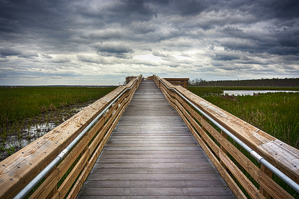 While we were at the Wildlife Refuge, I was looking along the Observation Platform to see if I could find something interesting to photograph. As I was walking down, I looked back and thought the platform itself was interesting. Plus I had a fairly Dramatic Sky to work with. Then I tried a series of effects in Photoshop, blending color and monotone into 1 image. If nothing else it kept me amused for a while trying different colors, tones, masks & combinations together. Plus it was fun to see different effects and how they work together.