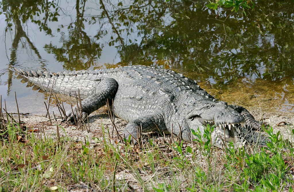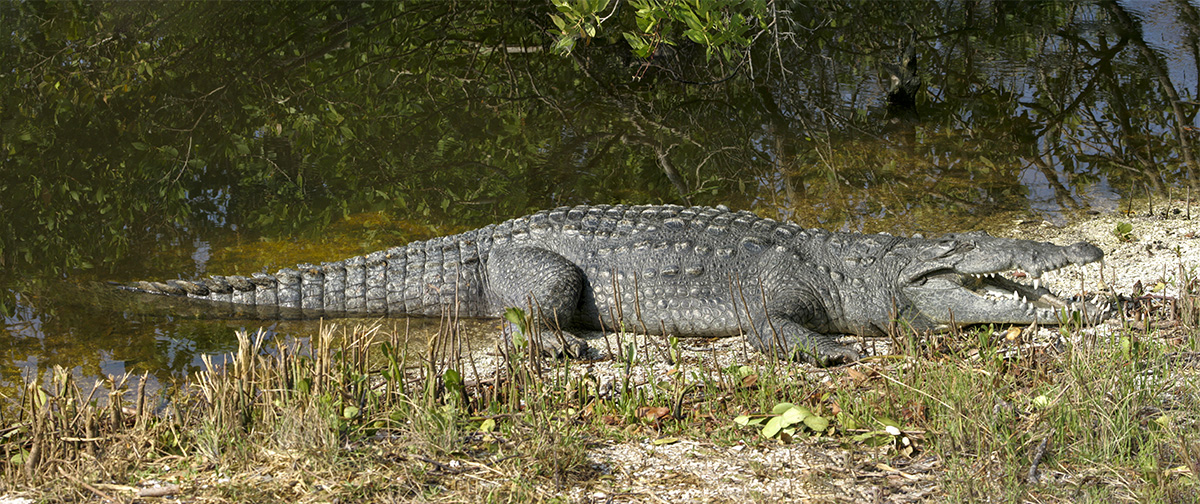 This is from a trip to J.N.Ding Darling NWR in May of 2005. We were surprised to see a Crocodile along the Wildlife Drive. They had people there to make sure people did not get close to it and also to keep an eye on where it might go next. It was interesting to see such a large Crocodile there, just sunning on the shoreline. Also it seemed to keep it’s mouth open the whole time showing off it’s menacing Large teeth! Back then I was using a Canon 1D mkII with a 100-400mm lens with a 1.4x Teleconverter. The featured image was taken @385mm with a 100-400mm lens @ 385mm.