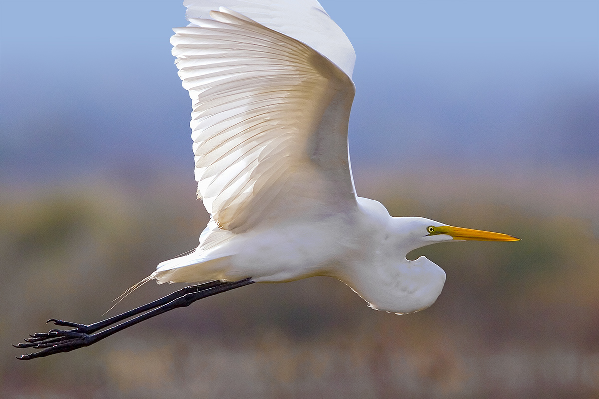 This is an image taken years ago at the Brigantine Division of the Edwin B. Forsythe NWR in Oceanville NJ. I was photographing other birds in the distance when this Great Egret flew close by me. I was able to get one image in focus as it passed by me before it changed course and flew away. It was so close I had to clip the one wingtip. I was using a Canon 20D with a 400mm DO lens.