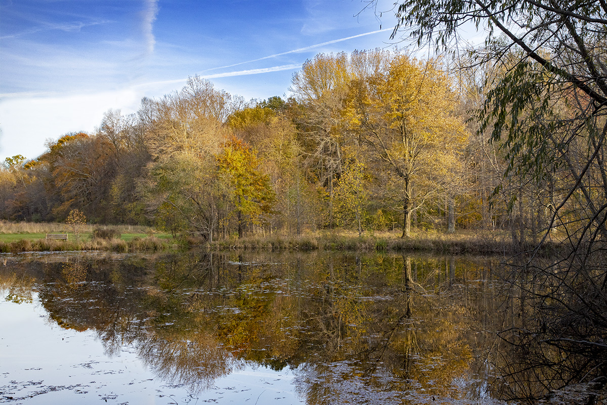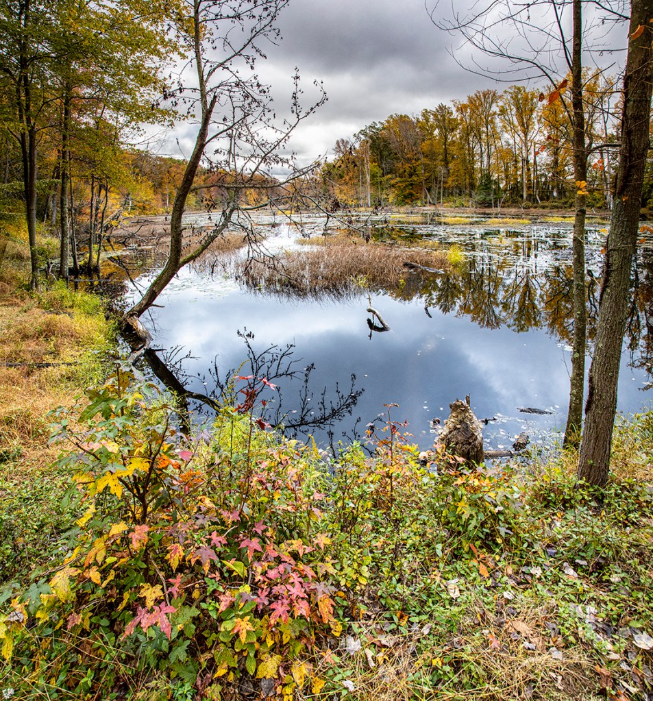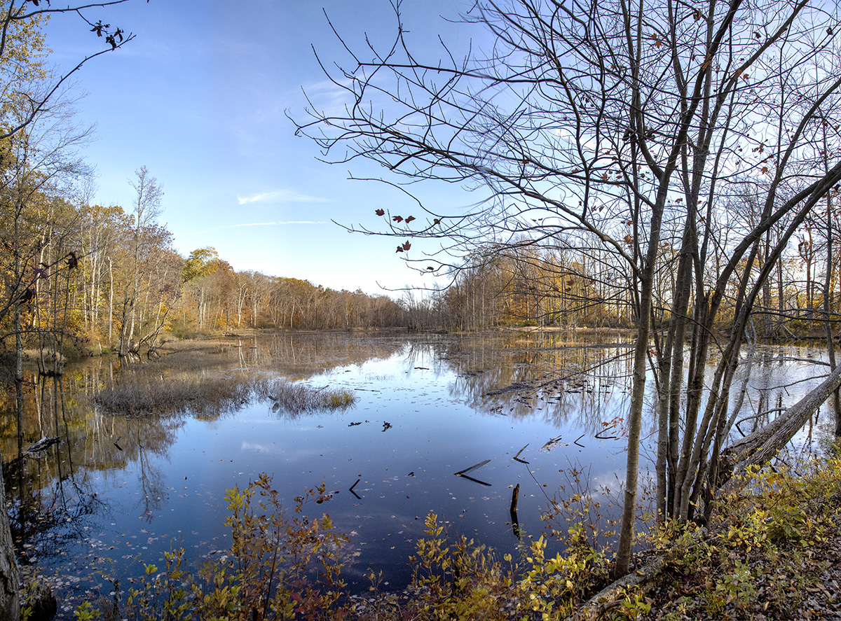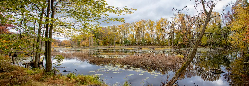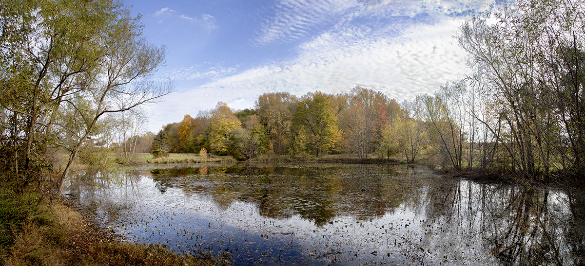 We went to Davidsons Mill Pond Park to take a walk through the wooded area and see how the Fall colors were. The panoramas here were from the large pond on the Farm Road Trail. The featured panorama image was 6 handheld horizontal images, @ 24mm looking down the pond from the narrow end of the pond. For handheld panoramas I tend to overlap the images more than if I was using a tripod. When doing panoramas, the amount of overlap on the images determines the length of the panorama.