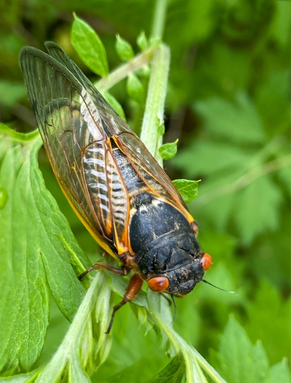 We went to one of the local parks to see if we could find some dragonflies to photograph. As I was trying to get closer to one of the Dragonflies, I noticed a large insect on the plants along the path. I was surprised to see a very large Cicada with those big red eyes staring at me. I was very close so I used my iPhone 11 Pro with the 4.3mm lens to get a couple of images. The featured image is made from 2 iP11 images to get sharper focus on the Cicada eyes and then focused on the back wingtips. Apparently this is the year Cicadas will re-emerge in NJ from their 17 year life cycle. So I guess it will be getting really noisy soon! Thousands of Cicadas were seen on tree trunks, leaves and fence posts at the Updike Farm in Princeton, NJ.