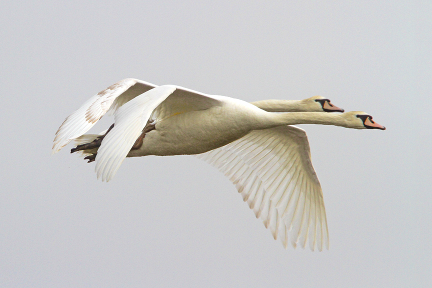 These were taken at the Edwin B. Forsythe National Wildlife Refuge a while ago. It was a foggy day and we were hoping it would burn off as the sun was getting higher. We saw this group of 4 swans coming towards us out of the heavy fog. They were close together and one behind was an Immature Mute Swan. They came very close and in a tight formation. I shot quite a few as they flew by, thinking they would not be great because of the fog and grayish look. But in Photoshop I brought up enough detail to be interesting.