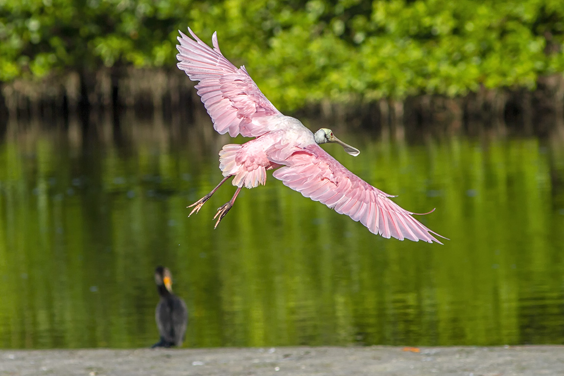 Roseate Spoonbills are one of my favorite Florida birds to photograph! Plus they are a large colorful bird that fills the frame & stands out in photos. In this image I really liked the outstretched wings showing the feather detail and the size of the wingspan. Their wingspan on average is 47 to 52 inches. Image taken at J.N. Ding Darling NWR in Florida a few years ago with a 300mm lens, 1.4X teleconverter on a Canon 7D.
