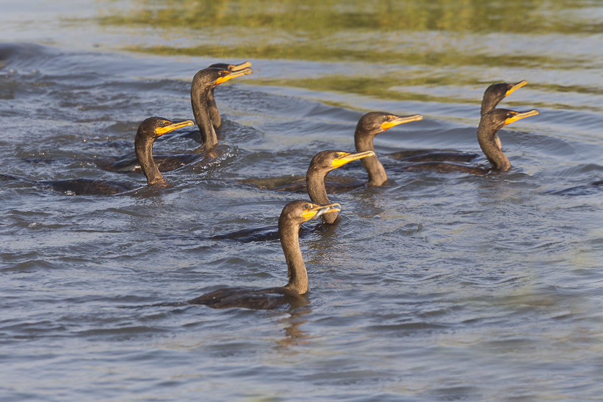 When photographing at the Brigantine Division of the Edwin B. Forsythe National Wildlife Refuge in NJ, you often see large groups of Cormorants swim by in the channels along the Wildlife Drive. This group had about 92+ Cormorants in the Group. It is hard to get an actual count because some are under water as you are counting the group. I counted 92 Cormorants in the image, but some more were not visible as I was counting.