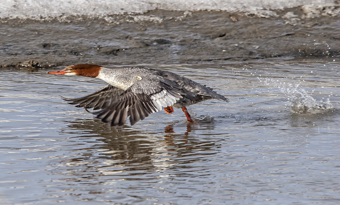Here are some more images taken many years ago at the Edwin B. Forsythe National Wildlife Refuge, Brigantine Division in Oceanville New Jersey. I was surprised to see some Common Merganser Ducks back then, especially in December with snow. But they were fun to photograph, especially the Merganser’s interesting takeoff series. All were taken with a 400mm Canon DO lens.