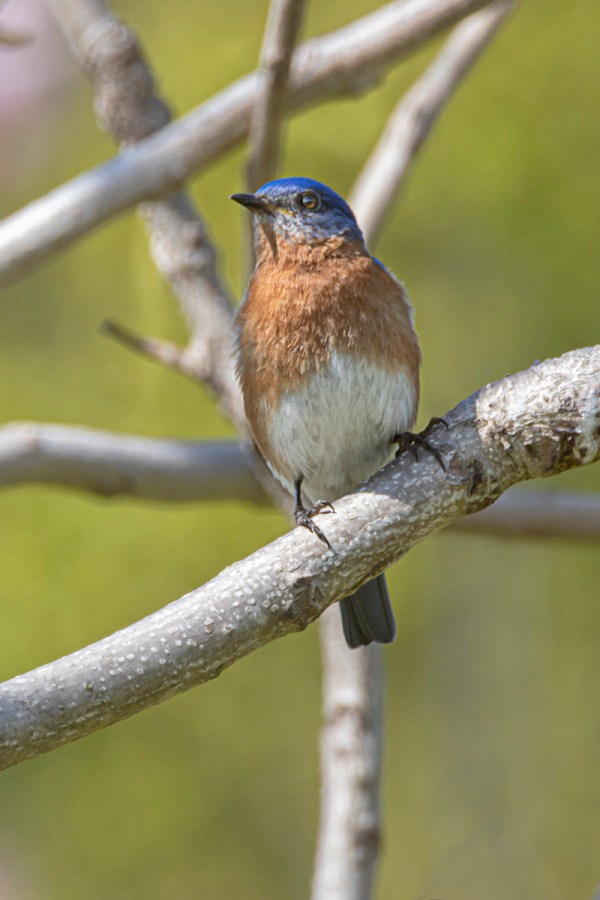 Eastern Bluebirds have started returning to Davidsons Mill Pond Park. I wanted to go photograph them but decided to use a very long lens so as not to bother them as they are finding their homes in the BlueBird Boxes scattered around the park. There is a lot of activity around the nesting boxes because the Tree Swallows are also trying to take over the Bluebird boxes. So a lot of back & forth between them. I decided to use a 150-600mm Tamron lens @ 600mm with a 2X teleconverter with a Canon R giving me a focal length of 1200mm. The Canon R can still autofocus with that combination of the 150-600mm Tamron lens & the Sigma 2X Teleconverter which helps with my old eyes! It was a fun photo outing and hope that soon the Dragonflies are next to return! I also smoothed out out the backgrounds somewhat because of the flowering trees & branches in the background to give a smoother clean background with the Bluebirds.