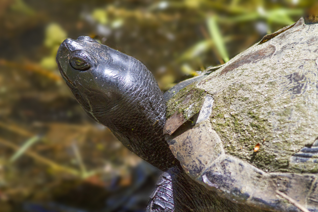 We went to Davidsons Mill Pond Park looking for Dragonflies, but I only saw a few off in the distance out in the water on some plants. But by the small pond near the entrance to the park I saw this Redbelly Turtle basking on the edge of the water. It was at the bottom of the incline with tall grasses before & around it. I was using a 300mm lens with a 1.4x teleconverter so if I backed up to get the whole turtle in the shot the grasses in front of it would be in the way. So I got very close and shot 15 images, 3 rows of 5 overlapping shots to get the whole Turtle in. Working on the files when I got back I loaded all 15 images into 1 layered Photoshop file. Then I used the Edit >Auto Align, then >Auto Blend to automatically align & blend the 15 images for the final layered image. After that I cropped the image because hand holding the camera I had uneven border edges around the image.