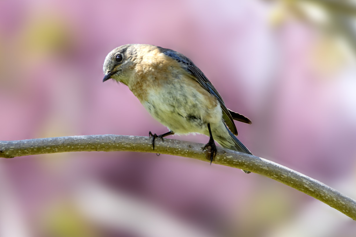 Eastern Bluebirds have started returning to Davidsons Mill Pond Park. I wanted to go photograph them but decided to use a very long lens so as not to bother them as they are finding their homes in the BlueBird Boxes scattered around the park. There is a lot of activity around the nesting boxes because the Tree Swallows are also trying to take over the Bluebird boxes. So a lot of back & forth between them. I decided to use a 150-600mm Tamron lens @ 600mm with a 2X teleconverter with a Canon R giving me a focal length of 1200mm. The Canon R can still autofocus with that combination of the 150-600mm Tamron lens & the Sigma 2X Teleconverter which helps with my old eyes! It was a fun photo outing and hope that soon the Dragonflies are next to return! I also smoothed out out the backgrounds somewhat because of the flowering trees & branches in the background to give a smoother clean background with the Bluebirds.