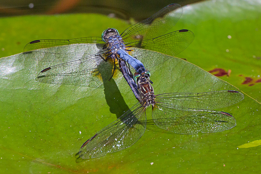 Blue Dashers Mating. Canon EOS 1D MkIV, Canon 400mm DO IS f/4, 32mm of extension tubes, Canon Series III 1.4X Teleconverter, 25mm extension tubes, Fill flash, with Better Beamer Flash Extender, – 2 stops, f/8, 1/1600 sec., -2 stops, ISO 1250