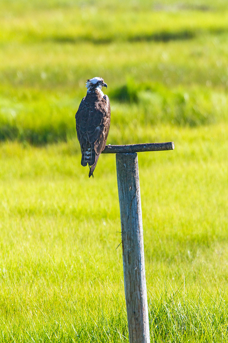 Usually around the Osprey Platforms is a post for the Ospreys to roost and keep an eye on their nests on the platforms. Many times you will see them eating a fish there or just hanging out keeping an eye on what is going on.