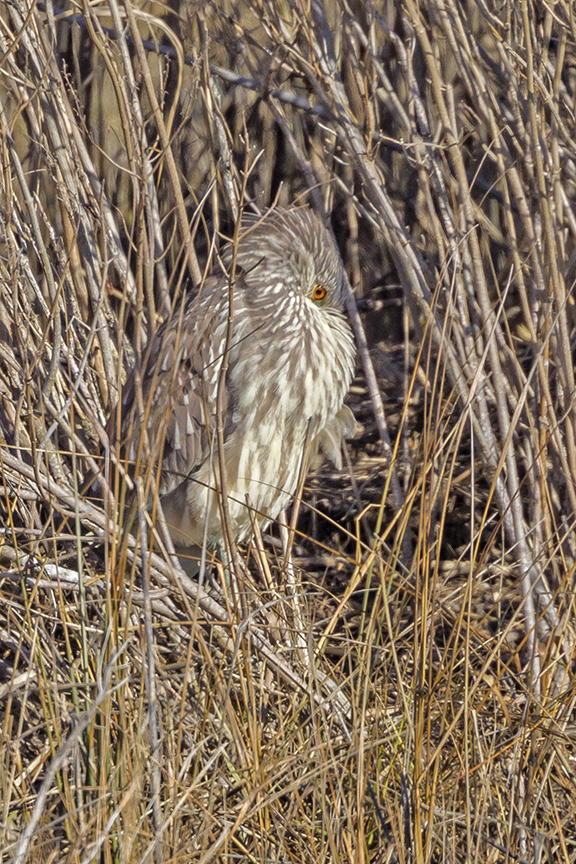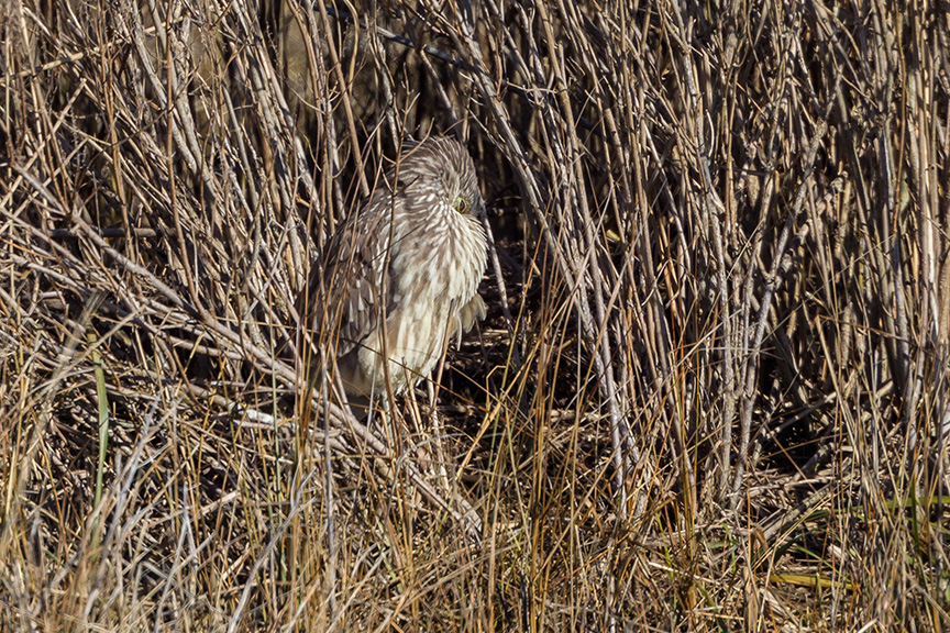 We were surprised to find 2 Immature Black-crowned Night-herons sleeping in the grasses at the Edwin B. Forsythe National Wildlife Refuge in Oceanville, NJ. They were close together in the grasses along the Wildlife Drive. Usually they would be long gone by this time. I have never seen them at the end of December in New Jersey. Even though they were sleeping, they opened their eye to see if I was a threat, then closed them again. Fun to see them there at this late date.