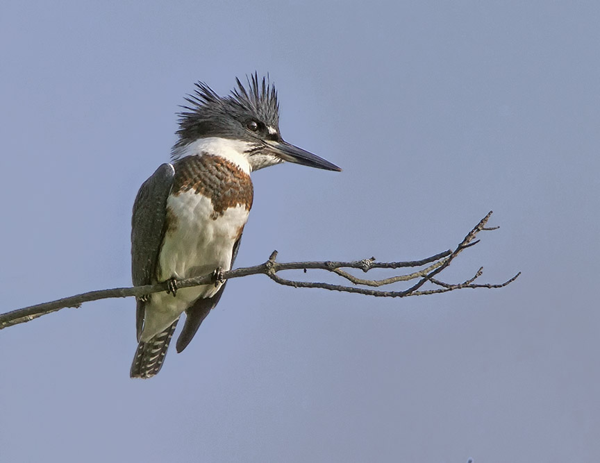 I finally saw a Kingfisher at one of the local nature areas. Usually they are here before this, but there was limited sightings so far. This one was on a branch across from me. The Kingfisher stayed for about 10 minutes then flew off to the channel, chattering as he went.