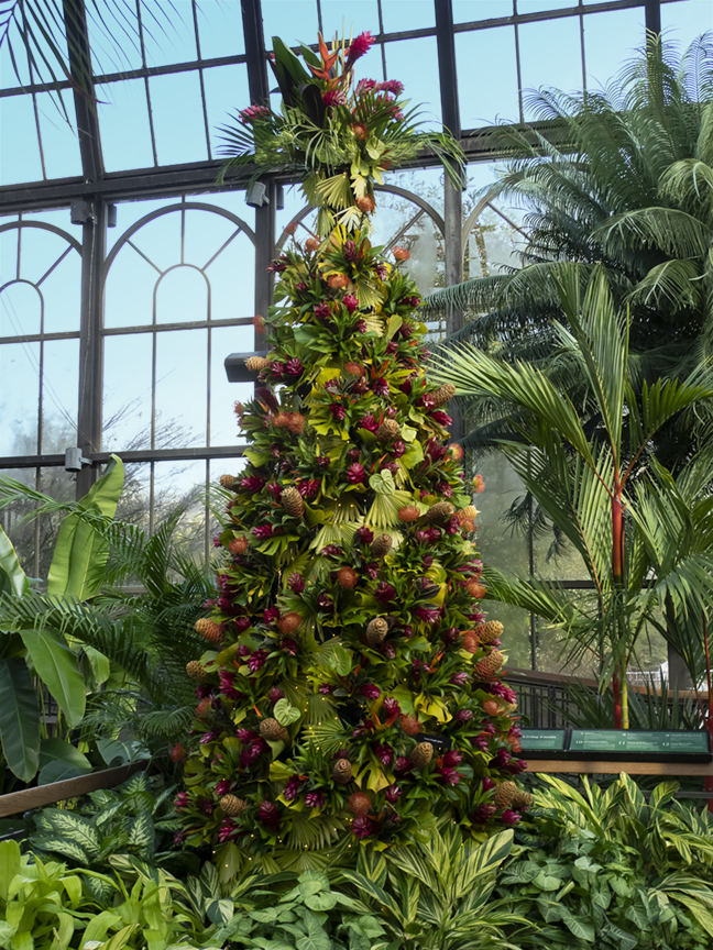 In the Palm House area of the Conservatory is this Tropical Christmas Tree. It is an amazing tree with tropical plants and flowers. Very colorful to photograph but difficult with all the visitors trying to take in all the colors and textures. A fun photo subject!