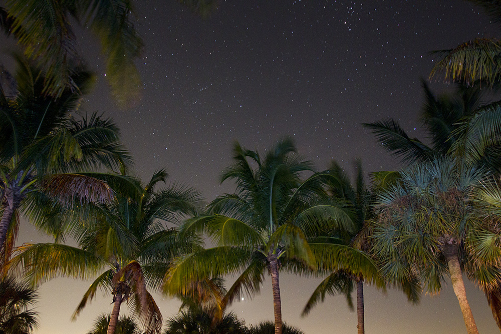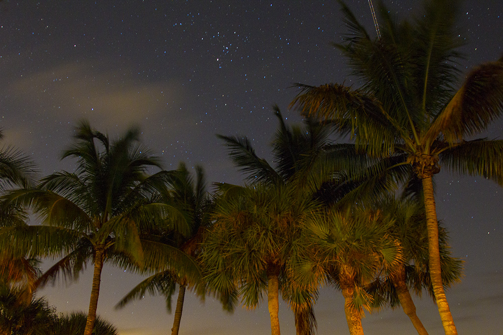 While in Sanibel Florida, I tried shooting a few night sky shots. In the Northeast it is usually too bright to shoot night skies with stars, so I thought Sanibel on the Gulf would be a good place to try. When I started it was a clear night, but as soon as I got setup, clouds started to come in. I got a few shots anyway and it was fun to try. Exposures are fairly long and use ISOs that are higher than usual. I used exposures from 10 sec to 30 seconds. I did not have an Intervalometer or cable release to control longer exposures, so I was limited to the built in maximum shutter exposure of 30 seconds. Most digital camera bodies limit you to 30 seconds. Battery life at long exposures and long exposure noise reduction in the firmware really drains the batteries quickly. Also use a sturdy tripod and try not to touch the tripod or camera during the exposure, any little movement will show in your image. As it was, there was a slight breeze so some leaves have a slight movement. You can also try painting the trees or foreground with a small flashlight during the exposure to add texture to foreground subjects. This takes a little practice, but adds some more dimension and depth to your images. I seemed to like the look I got using ISO 1250 for most of the images, but this is all based on the camera body I was using. All images were shot with a Canon EOS 1D MkIV, Canon 24-105mm f/4 L set to 24mm and manually focused either to the trees or infinity.