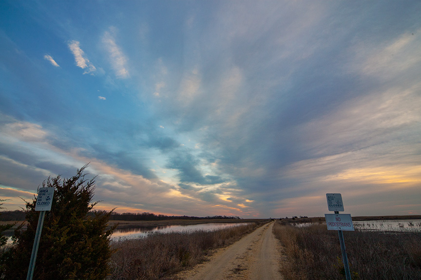 We took Friday off and went to the Edwin B. Forsythe NWR, Brigantine Division in Oceanville, NJ. We arrived before sunrise to be ready to photograph. I wanted to capture the pre-sunrise or Dawn along with the Sunrise, hopefully with birds flying through it. Sometimes Dawn is more interesting than the actual Sunrise. I was trying for a multi-shot vertical panorama Sunrise with a long lens to capture mainly the sky without too much foreground. The feature image is a 5 shot vertical panorama shot with a 400mm lens. I waited for the sun to be behind the clouds because I was using a Canon 400mm DO Lens (Diffractive Optics) which will flare when pointed at the sun. Then I concentrated on single shot images with the 400mm and adding in some with 17mm through 105 using multiple lenses.These will be posted later. Warning! Do not look directly into the sun, especially with a telephoto lens. You can and will damage your eyes! I used live view or focused off to the side then estimated where I should aim the camera. On the panorama, I just shot to one side and moved to the other side, not looking through the viewfinder.