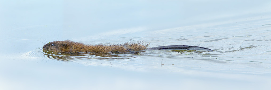 I was at a local Nature Preserve looking for Dragonflies, when a Muskrat swam by where I was setup. I had a 400mm lens on so I could not get the whole muskrat in one shot. I quickly shot 3 shots to make a panorama to get the tail in. I was also working to get the water wake to be symmetrical so the water wake lined up as closely as possible.