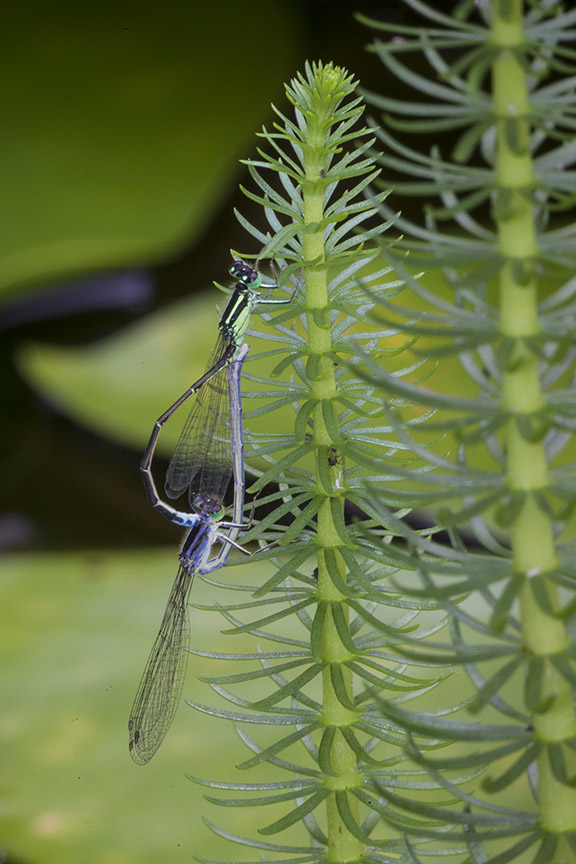 There were quite a few damselflies buzzing around the pond, so I was waiting for them to come closer. Then I noticed these 2 mating on this plant close to where I was. They stayed for quite a while so I got a few images.