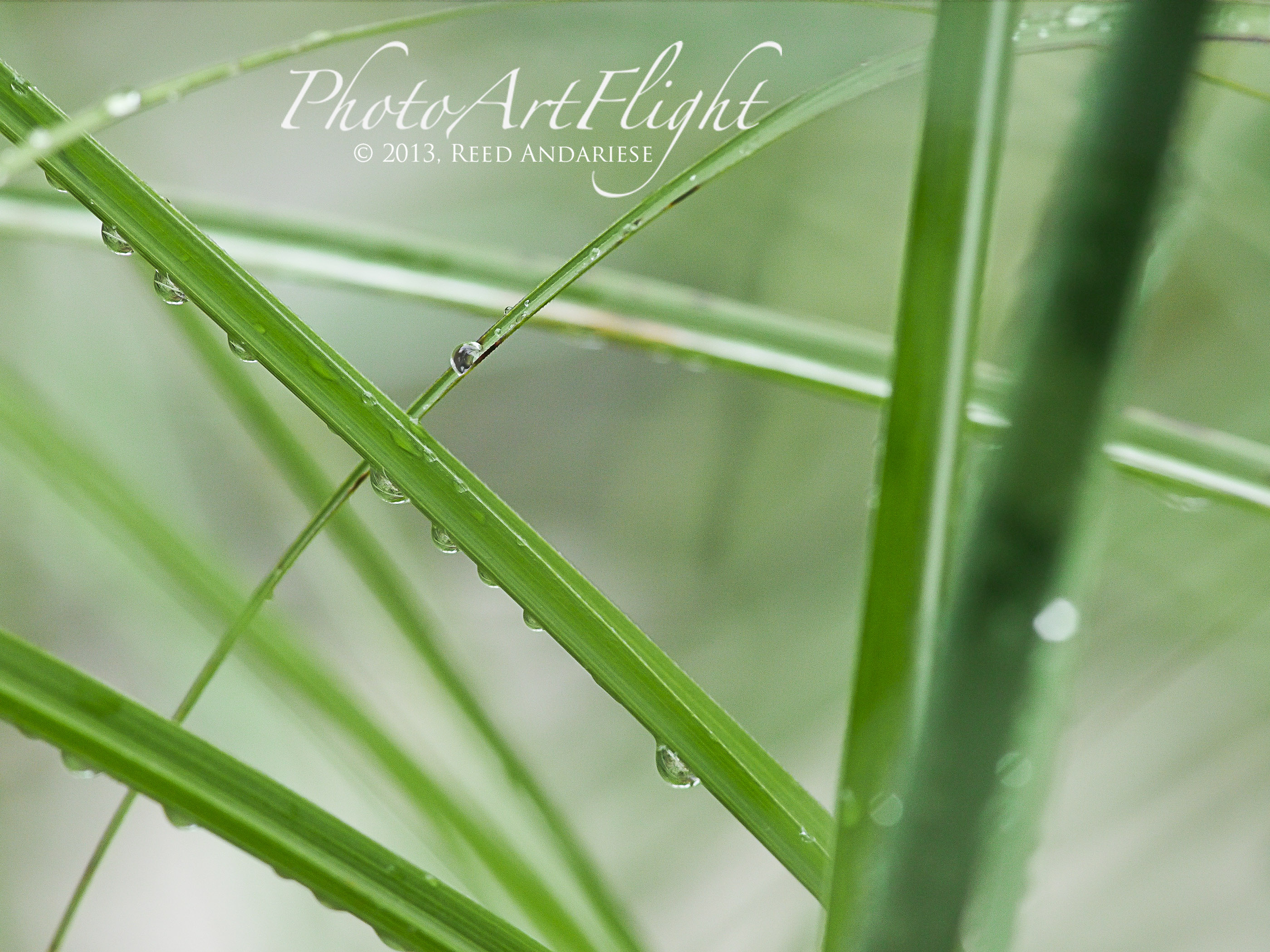 I found this grass leaning over after a heavy rain, but liked the symmetry of the arc with the water drops. Probably about a 15″ long section assembled with a 5 shot panorama , 150mm macro lens, assembled in Photoshop.