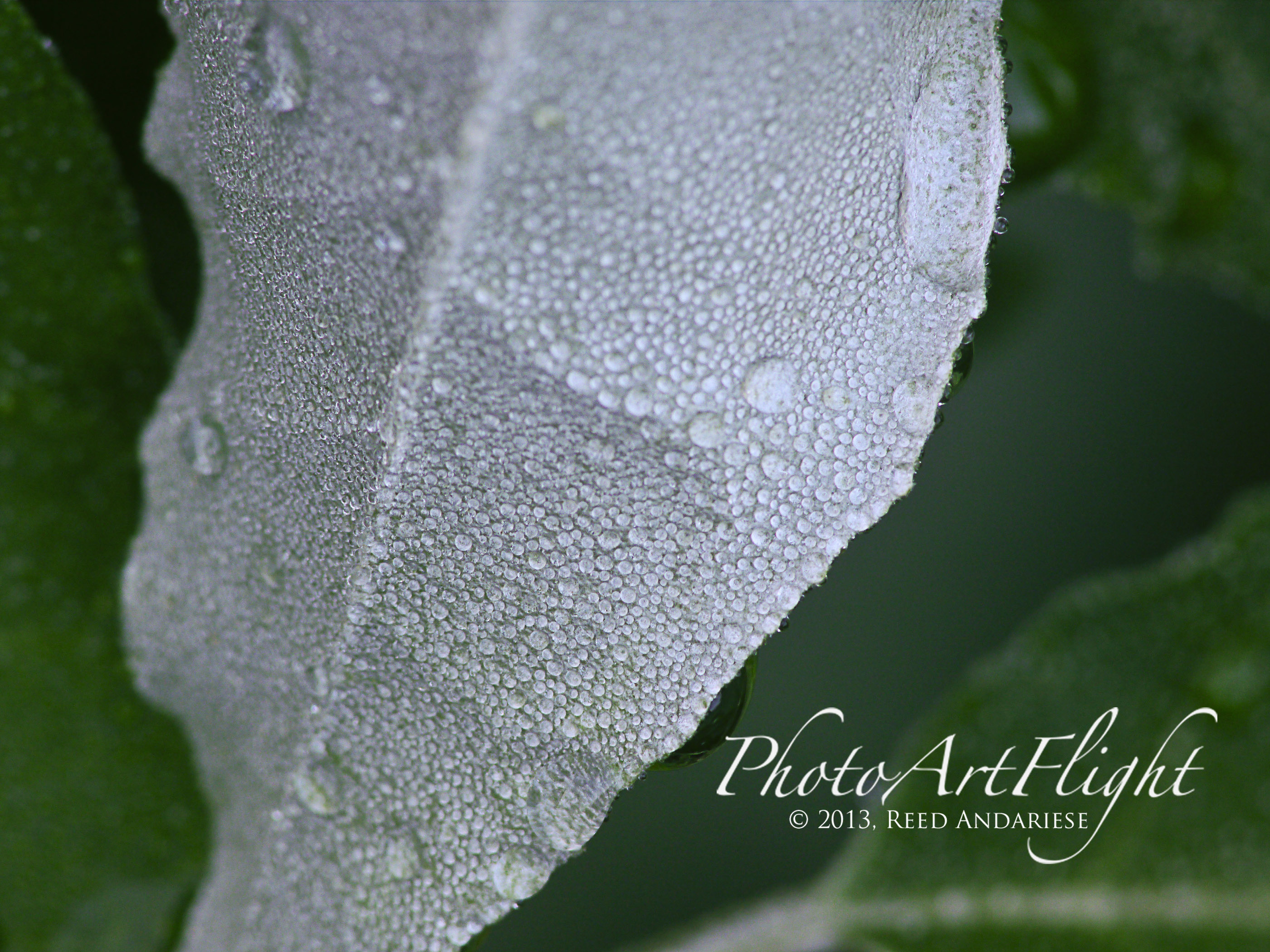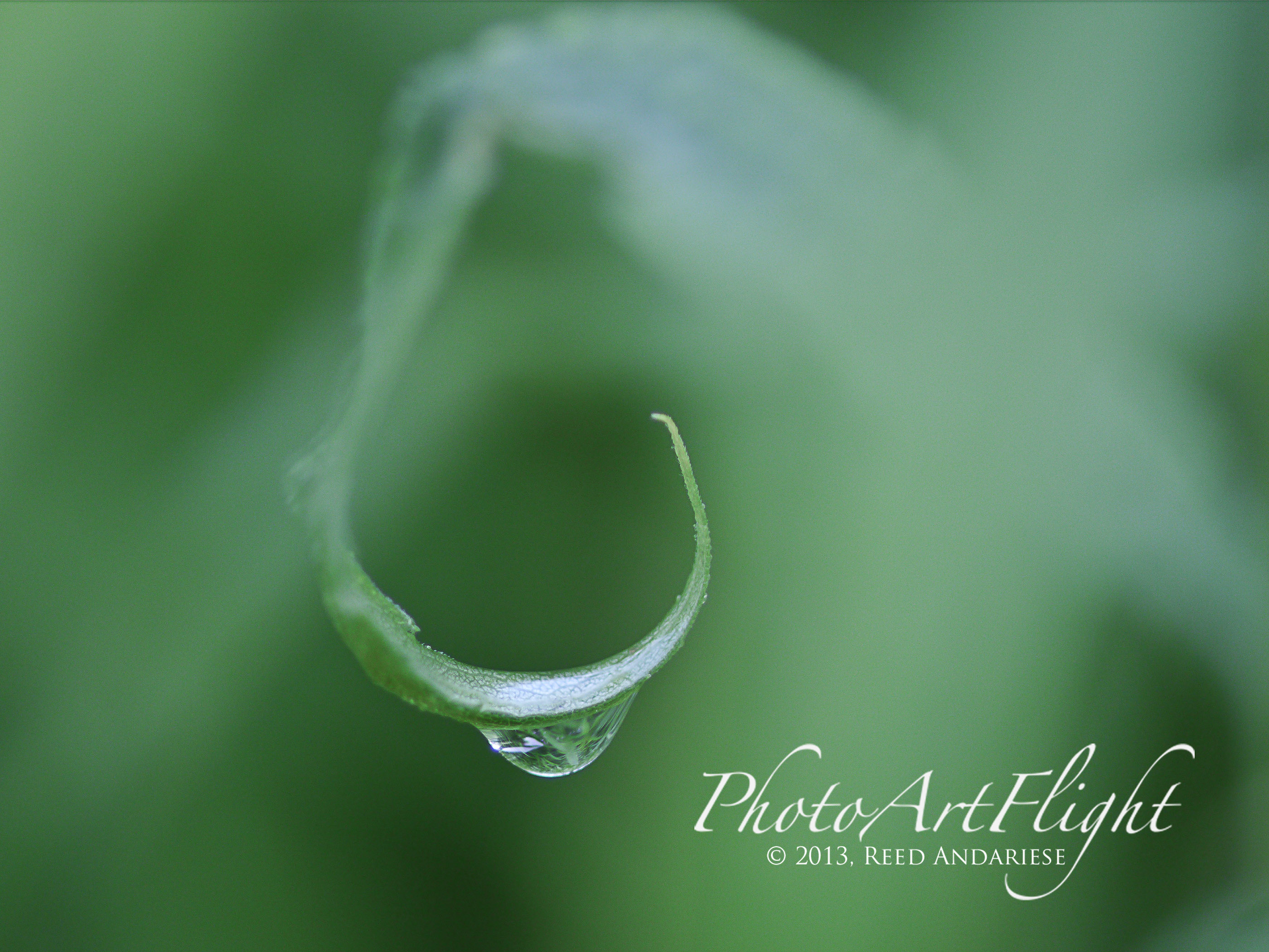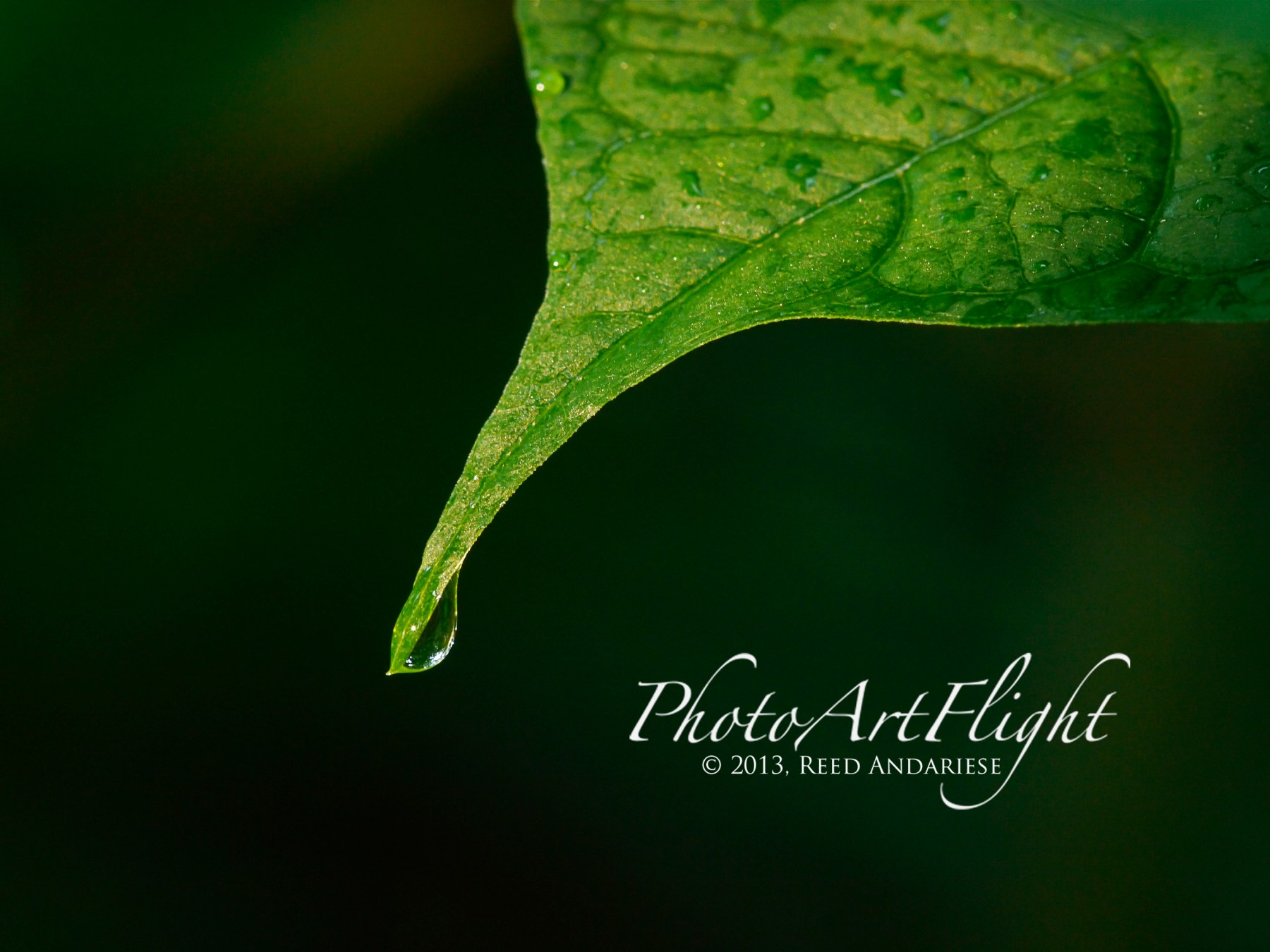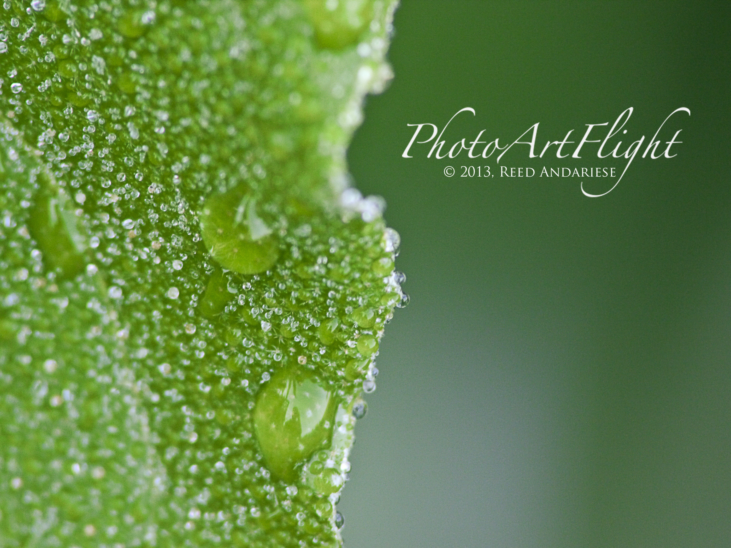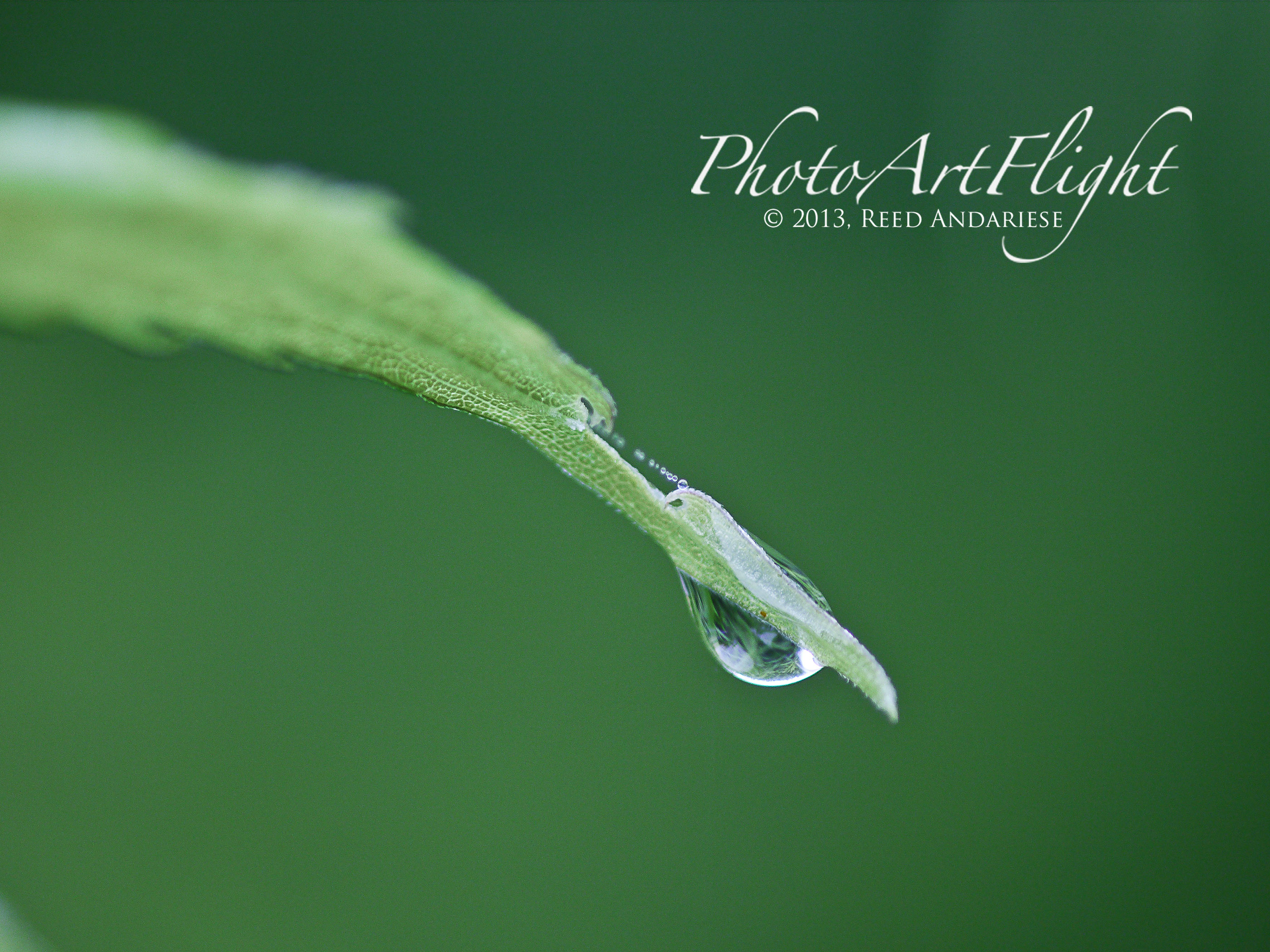A lot of photographers do not like it when it rains, cuts down on their photography. I like a rain showers, when it ends or just drizzles a little, it gives you an opportunity to go and add water droplets to your photos. It adds interest and dimension to leaves and other subjects. It is like a Treasure hunt and you can do it in your own yard or a local park. When shooting wet leaves, sometimes it helps to use a polarizing filter to cut down on the glare if the sun comes out. Most of the photos shown here were shot using the Panasonic GH2 m43 camera with an older manual focus Canon FD 200mm f/4 macro lens. I like using this combination for macro. With this combo it is like using an f/4 400mm macro that goes to 2X without extension tubes. Your depth of field is also extended because it is a 200 mm lens, but with the 2X crop factor of m43 giving you 400mm. Plus you are not right on top of your subjects, gives you a nice working distance. You just press in the exposure compensation and the image in your viewfinder zooms in for critical focus. Then you just touch the shutter button and it zooms out for the full image on the viewfinder. Also as you stop down, the image remains bright in the electronic viewfinder, but you also see the full depth of field of the aperture you set. After you shoot your shot you also instantly see a preview of what you just shot for a second and will give you “blinkies” on a bright area that might have gotten blown out so you can instantly compensate and reshoot a darker exposure. So enjoy and go out and look after a rain shower to see what you can find.