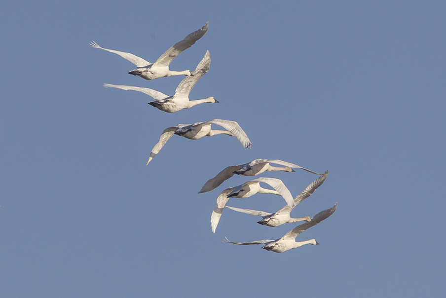 Higher Flight of Tundra Swans – 400mm, 1.4x teleconverter