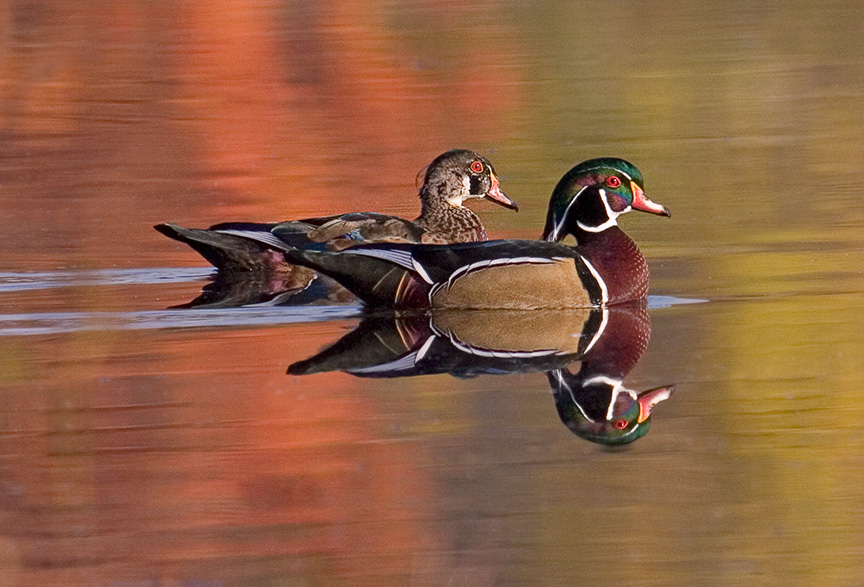 Small Group of Wood Ducks. Canon EOS MkIV, Canon 400mm f/4 DO lens, Canon Series III 1.4X Teleconverter, f/8, 1/160 sec., +1 exposure compensation, Fill Flash w/ Canon 600ex-rt with a +2 stop exp. comp because of distance, with Better Beamer Flash Extender, ISO 640.