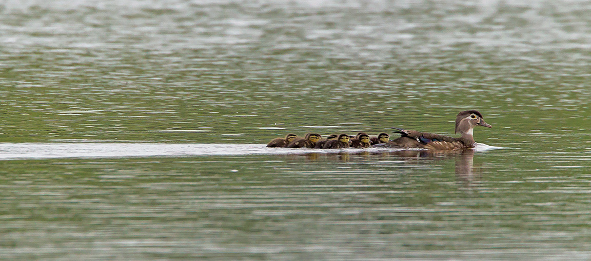 This Wood Duck family, at this local Nature Preserve swam by, in their typical line formation. There were 10 Ducklings, hopefully the Snapping Turtles will not get to many of them. So far this year seems to be a slow year for the Wood Ducks. Usually at this time of year there are many more Wood Duck families swimming around the Lake.
